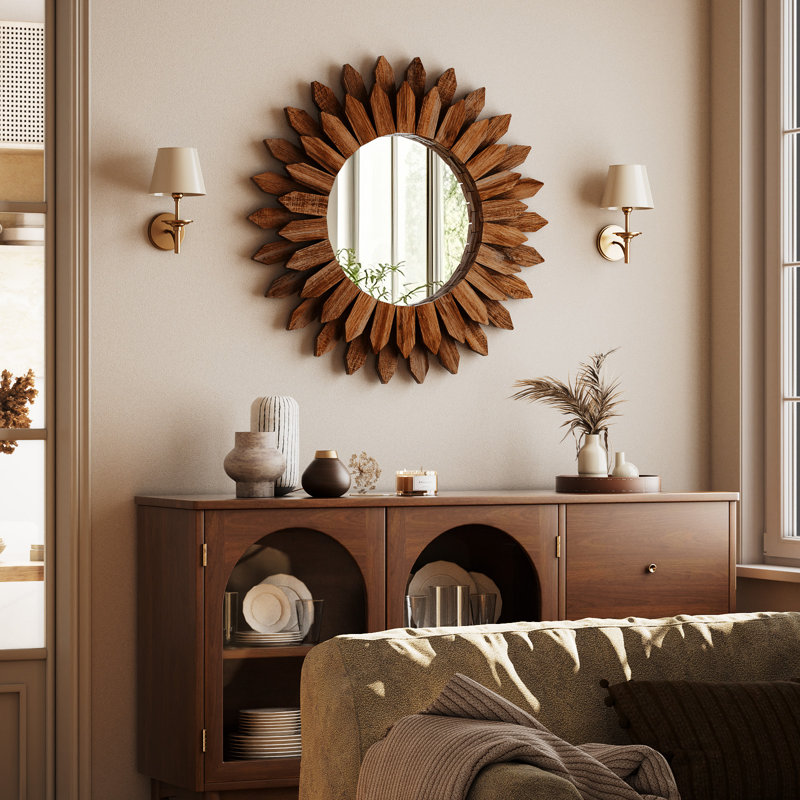 This sunflower wall mirror is pretty and practical! The wooden petals add natural charm, while the super strong glass ships safely. Perfect for bathrooms, hallways, or living rooms – where it works as both mirror and art.
